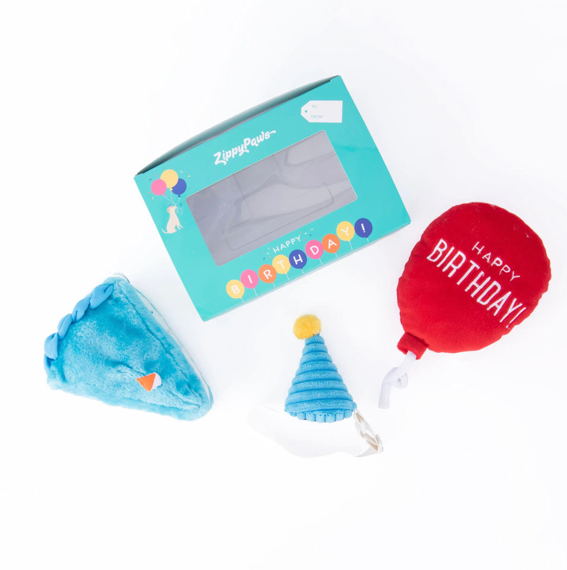 The perfect box to celebrate a birthday! Set comes with a small Birthday Cake plush toy, a "Happy Birthday!" balloon plush toy, and a cute birthday hat with elastic headband.