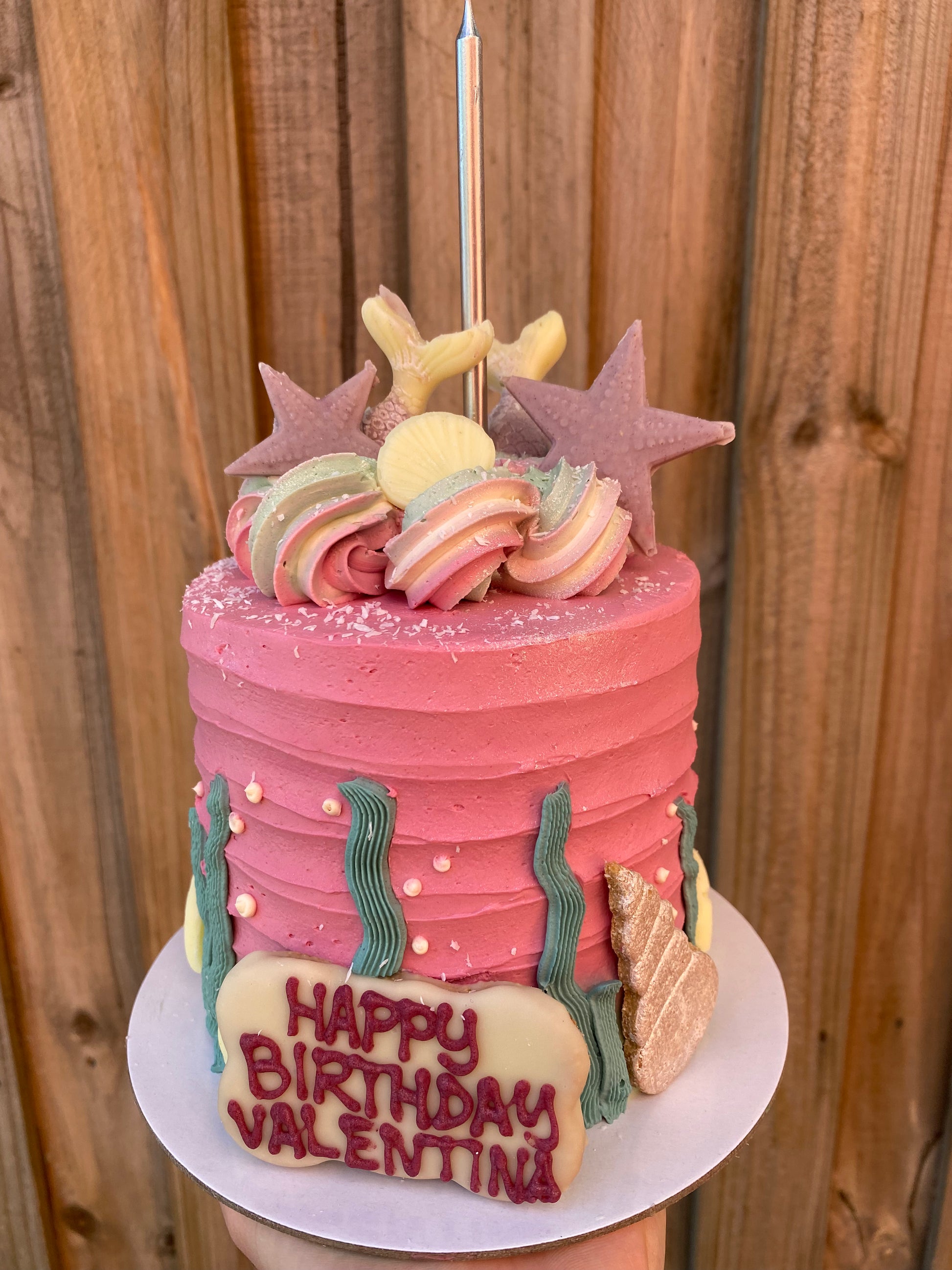 Pink-green under the sea theme with cute beetroot & green spirulina ombré icing, shells, mermaids and algae you hope not to touch your feet when swimming. 🤭
